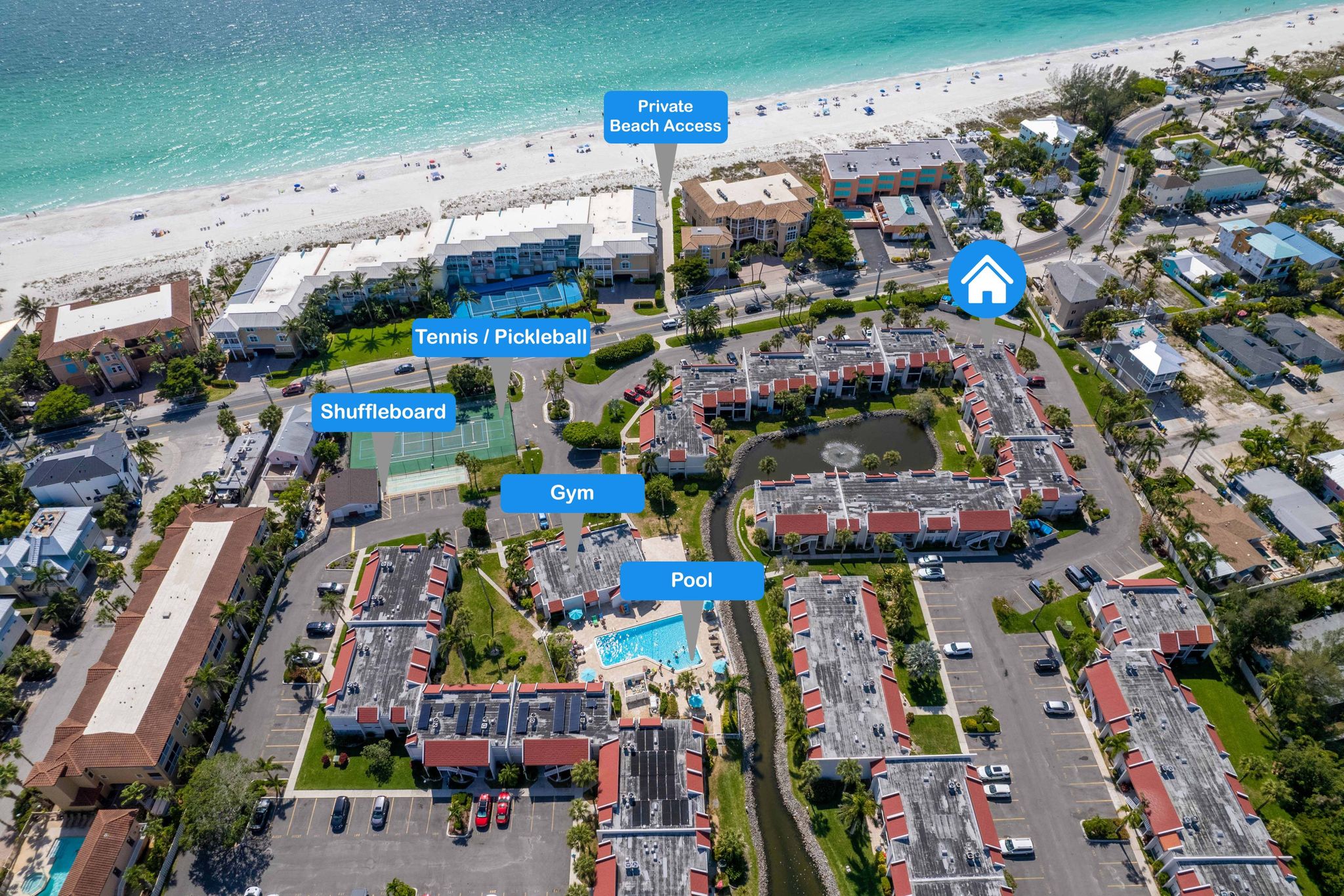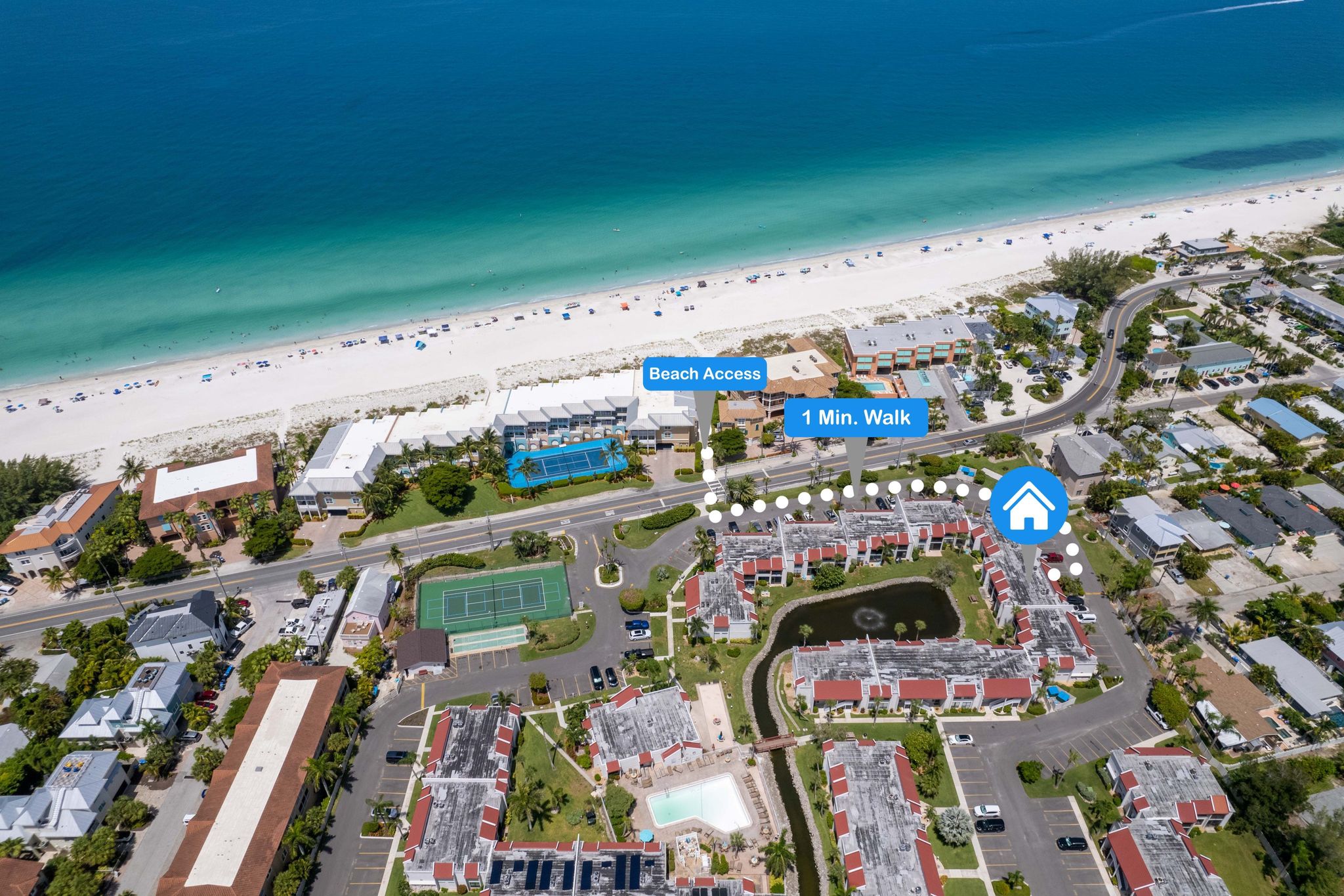 Location, location, location! Enjoy island living in this beautifully updated 2-bed, 2-bath condo in the coveted Runaway Bay community—fewer than 100 steps to private beach access and the turquoise Gulf of Mexico. Located on the second floor, the home has been thoughtfully remodeled with stainless steel appliances, quartz countertops, and a bright, coastal-inspired palette that feels fresh and inviting. Spacious living areas flow to a screened porch ideal for morning coffee or evening sunsets. Perfect as a full-time residence, vacation retreat, or income-producing investment, the unit offers excellent rental potential when you’re not using it. Runaway Bay amenities include a heated pool, tennis and pickleball courts, and lush tropical grounds, all just moments from Bradenton Beach dining, shopping, and entertainment. Turnkey and move-in ready—own your slice of Anna Maria Island paradise.